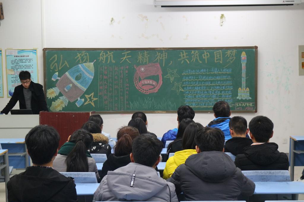 神州十一号返舱顺利着陆,标志我国航天事业又取得了重大进步。为带动大家了解和学习航天精神,增强同学们的民族自豪感和自信心,beats365官方网站于11月24日开展了“弘扬航天精神,共筑中国梦”的主题团课。