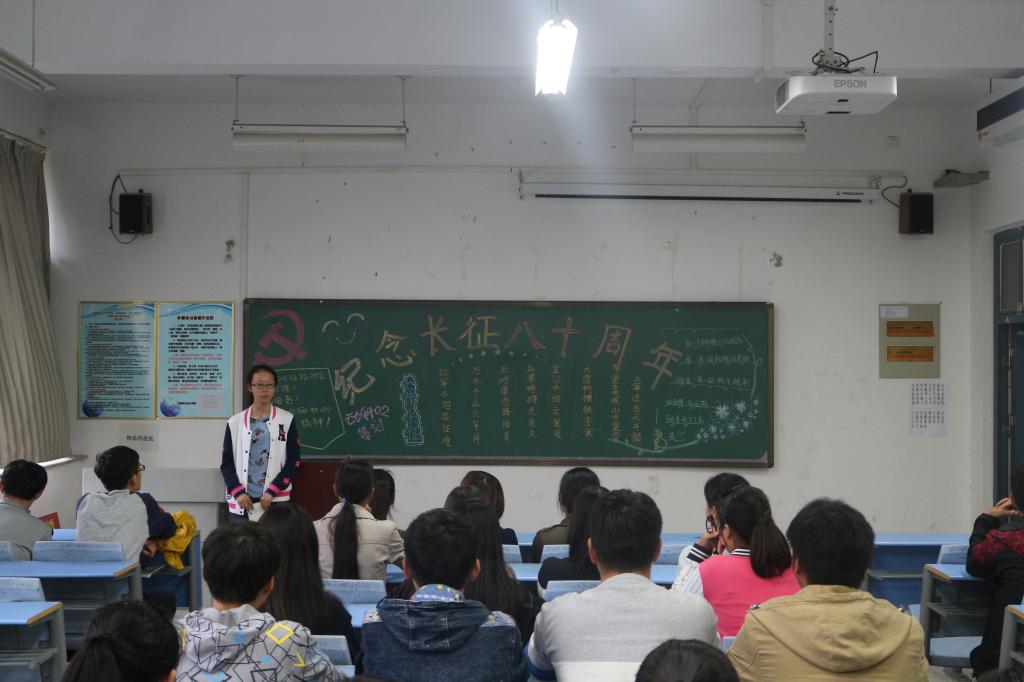 红军不怕远征难,万水千山只等闲。本次团课通过视频和图片,向同学们详细的介绍了红军长征的始末。学习过相关材料之后,同学们发表了自己对长征精神的理解。同学们说,长征所反映出来的不屈不挠、艰苦奋斗、英勇无畏等精神已经积淀为中华民族的优秀文化传统。无论是在抗日战争时期,还是在新中国成立后社会主义建设时期,长征精神都备受推崇。它体现人们对爱国主义教育、良好的道德价值观培养等各方面的追求。接下来各班又进行了以纪念红军长征胜利80周年为主题的演讲比赛,很多同学都积极准备,进行了慷慨激昂、振奋人心的演讲,台下不时爆发阵阵掌声。