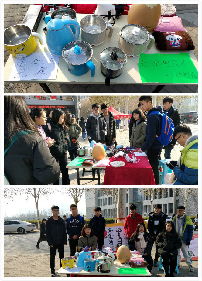 本次活动由院宿管会承办,以违规电器实物展示及解说为主。违禁电器实物展出形式多样,包括了电吹风、电热宝、电饭锅、电热壶等。宿管会的同学们还耐心地向大家讲解了在宿舍使用违规电器给生命财产安全带来的危害,同学们也主动向宿管会的成员询问违规电器限定的范围。此外,公司宿管会联合宣传部还制作了宣传展板,在校园内展出,宣传安全小知识。