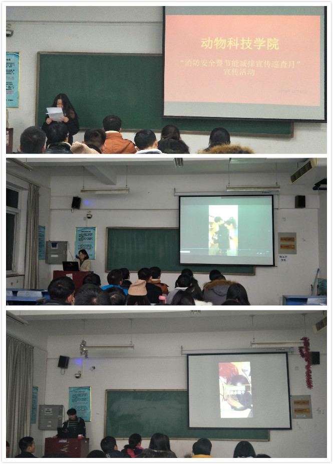 宣讲小组成员认真搜集了相关知识和典型案例,播放了全国高校发生的火灾事故典型案例宣传教育片,以惨痛的事故案例,触目惊心的火灾事件,让大家意识到消防安全的重要性,为每一位同学敲响了警钟,体会到维护宿舍及校园安全是每个员工义不容辞的职责。同时,小组成员还提醒同学们应从身边小事做起,如及时关掉水龙头,顺手关灯,尽量不叫外卖等,珍惜资源,节约资源,保护环境。