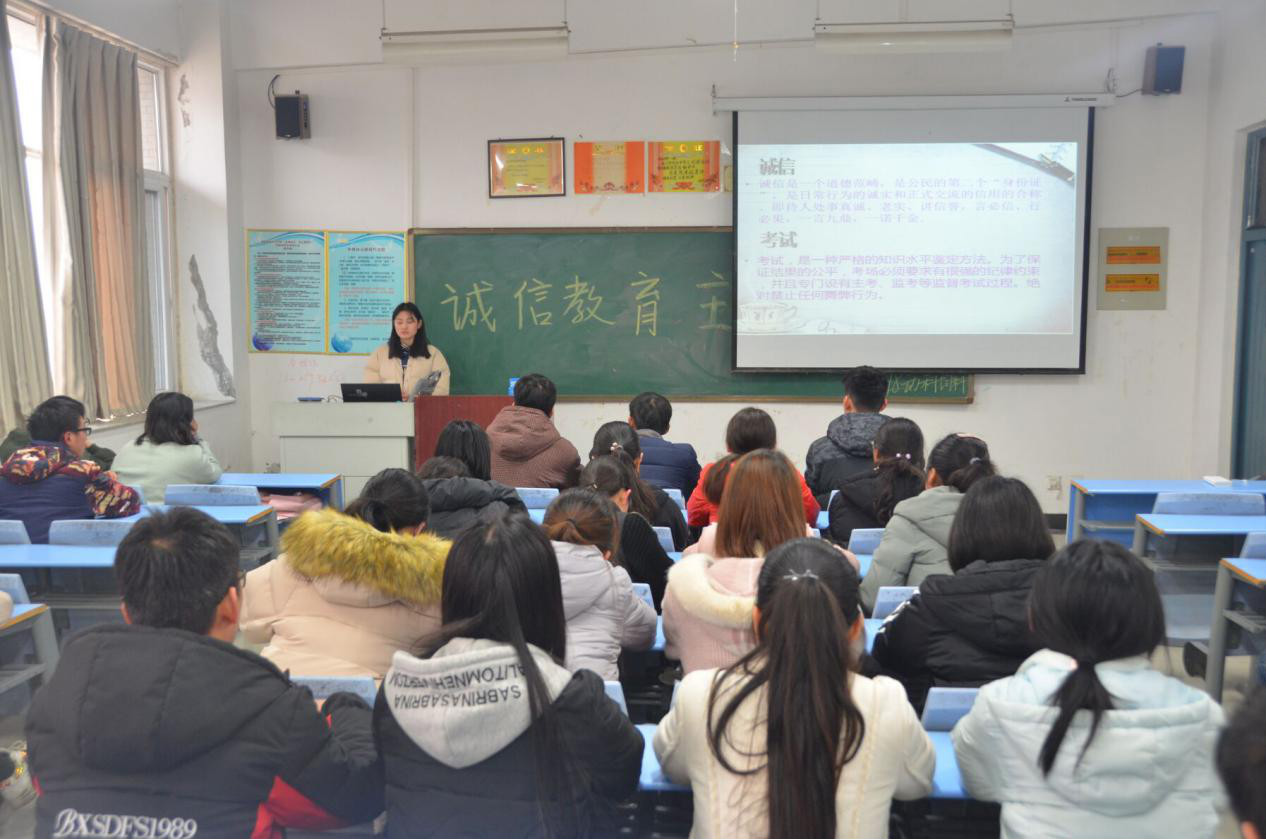 为进一步提升员工的诚信意识,公司于2018年12月20日下午组织各班开展以“人人知诚信,人人讲诚信”为主题的班会。各班结合诚信典型人物及事件,呼吁同学们通过实际行动认识诚信、感悟诚信、践行诚信,养成诚实守信的良好习惯和道德品质。临近期末,辅导员老师向同学们讲了诚信考试的重要性,要求同学们自觉践约守诺,把诚信美德融入良好的学风考风中。最后在学委的带领下各班进行了诚信考试的庄严宣誓。本次主题班会,不仅增强了员工的诚信意识,更能让同学们自觉践行诚信精神,做到诚信考试、诚信做人。