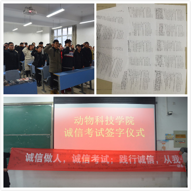 为充分发挥员工党员和员工干部先锋模范作用,beats365官方网站于12月23日在合教303诚信考试承诺仪式。员工党员和团学会同学依次在条幅上签下名字,这不仅仅是一个名字更是一种承诺,带头践行诚信行为,为同学们树立一个良好的榜样。随后各班组织同学们阅读诚信考试承诺书,阅读完后大家郑重地签下自己的签字,做出了诚信考试的约定。