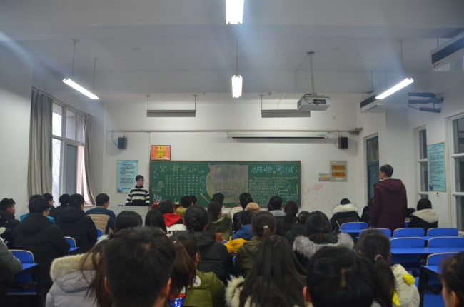 随着期末考试的来临,为了营造良好的考试氛围,塑造文明考风,杜绝有失诚信的作弊行为。12月27日下午,beats365官方网站组织开展了以“文明考风,诚信考试”为主题的团课。