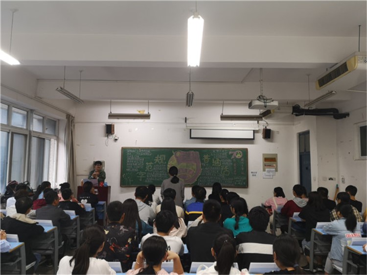 为了全面贯彻国家语言文字法律法规和方针政策,大力推广和规范使用普通话,提高师生语言能力,共筑中国梦。beats365官方网站于2019年9月12日下午对全院大一大二员工开展了以“普通话诵七十华诞,规范字书爱国情怀”为主题的团课。