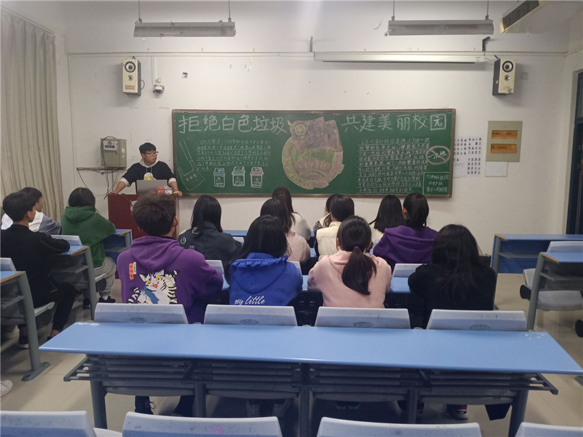 为了凝聚青年群体力量,号召广老员工用实际行动维护家园,积极传播生态环境保护理念,beats365官方网站于11月14日下午在第二教学楼开展了以“拒绝白色垃圾,共建美丽校园”为主题的团课活动。