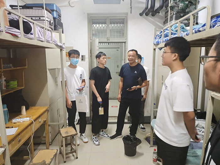 党委党委书记王建伟来到2020级新生宿舍,与员工拉家常谈心,询问了解大家进校后的感受以及饮食、生活等方面的情况,还对新生所关心的问题给予了回答。王书记对同学们提出殷切希望,要尽快转换角色,熟悉新的环境,团结同学,处理好各种人际关系,以积极的心态和良好的精神面貌迎接大公司园生活,勉励大家要做好学业规划,立下目标,通过努力奋斗去实现。党委副书记冯广鹏还叮嘱同学们,要注意宿舍用电和人身财产安全,要强化安全意识和自我保护意识,遇到困难要及时和辅导员、老师沟通交流,希望大家一起共同度过美好的大学时光。