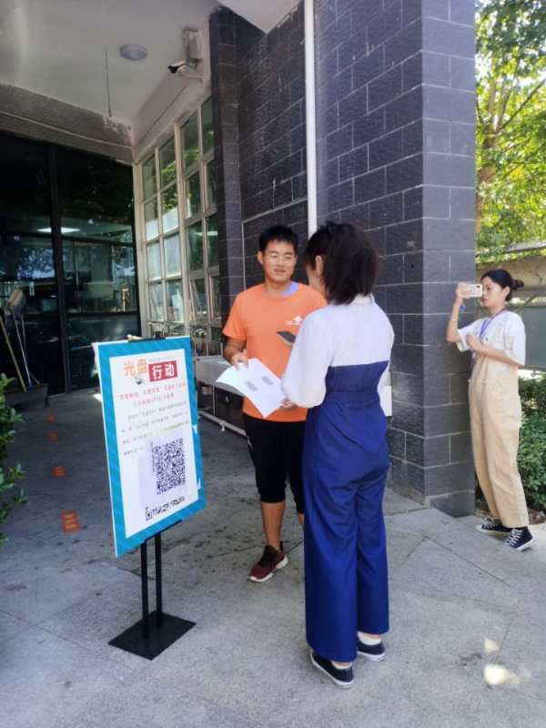 员工第一党支部和员工第二党支部10月29日中午在醒园餐厅联合开了“光盘节约留美名”志愿服务活动。在党日活动开始之前,员工第一党支部书记张粟组织党员志愿者学习了习近平总书记对制止餐饮浪费的重要指示精神,使节约为荣、拒绝浪费的观念深入每一位党员志愿者同学的心中,目的是在为同学服务时交流更加流畅,使工作开展的更加顺利,工作成果更加丰富。接着,党员志愿者在醒园餐厅门前拉起了“一粥一饭当思来之不易,半丝半缕恒念物力维艰”的横幅,旨在通过这种外化于无形的劝导方式,帮助同学们潜移默化的养成勤俭节约的用餐习惯。在用餐时间结束后,引导同学们进行微信小程序光盘打卡,极大的调动了同学们的积极性,吸引了越来越多的同学们参与其中。