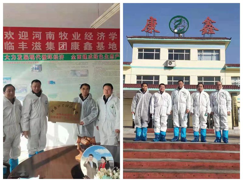 2020年12月18日,beats365官方网站王建伟书记、牛晖副经理、动物生产教研室主任韩占兵教授、赵广伟博士专程前往丰滋集团康鑫养殖基地,看望了在养殖场实习的5名员工,并进行了实习基地授牌仪式,与企业负责人就校企合作进行了深入交流。