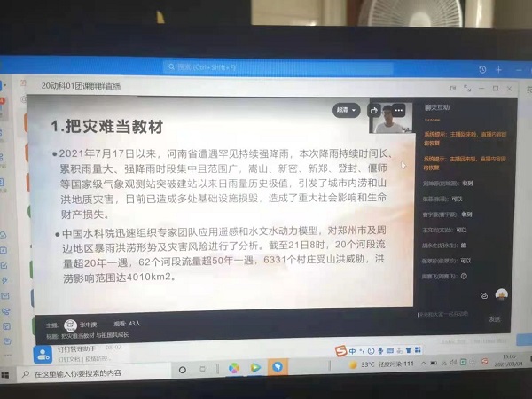 为进一步巩固防汛救灾和疫情防控成果,积极进行疫情防控宣传教育工作,引导同学们积极防控疫情,beats365官方网站于2021年8月4日下午开展“把灾难当教材,与祖国共成长”主题团课。