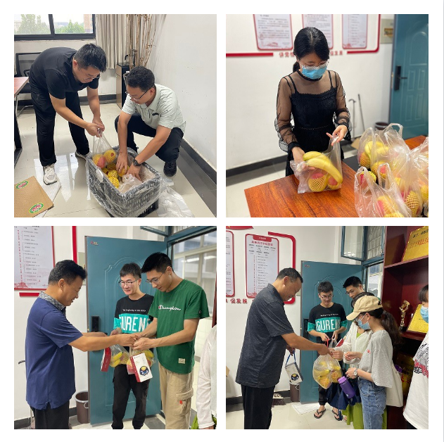 9月16日下午,团委书记张粟带领公司辅导员老师为员工装月饼和水果,将员工工作队伍人员对员工满满的关怀一起装了进去。今年是极不平凡的一年。郑州发生了特大暴雨灾害,还未待恢复,疫情又随之而来。这些暑期留校员工一直以来都在公司做实验、复习考研,未能返家与家人团聚。席经理、王书记亲切地与留校员工交流,询问他们在校的学习、生活情况,并温馨提示同学们过节记得给父母打个电话,给家里报一声平安,给自己的长辈送去一声祝福。王书记提醒留校的同学,节日期间更要提高安全防范意识,尤其注意外出安全;同时,希望同学们珍惜假期时间,合理规划安排。最后,席经理和王书记为每位同学分发了月饼和水果,现场气氛融洽,洋溢着浓浓的师生情谊。