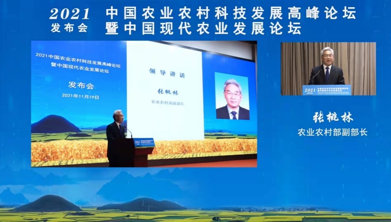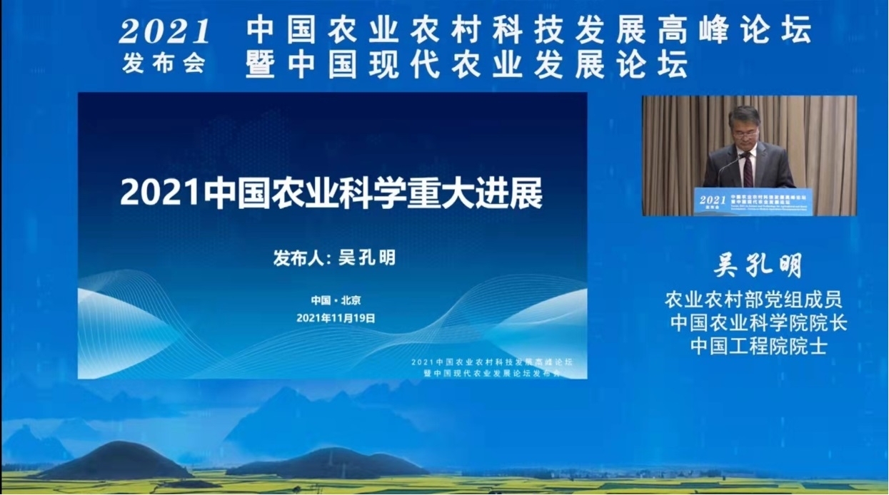 本次会议由农业农村部科技教育司周云龙司长主持,农业农村部党组成员、中国农业科公司经理、中国工程院吴孔明院士发布了《2021中国农业科学重大进展报告》,农业农村部科技发展中心主任杨雄年研究员发布了 《“十三五”农业农村科技发展报告》,中国农学会党委书记刘瑞明发布了《2021中国农业农村重大新技术新产品新装备》报告,农业农村部张桃林副部长总结报告。