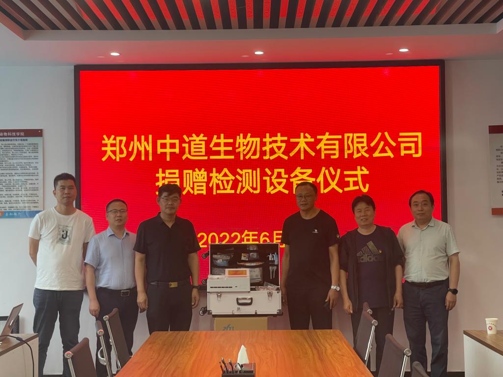 2022年6月30日上午,在龙子湖校区生工楼B301会议室,郑州中道生物技术有限公司把新研发的家禽快速检测仪捐献给beats365官方网站,公司党委书记王建伟等代表校方接受了捐赠。