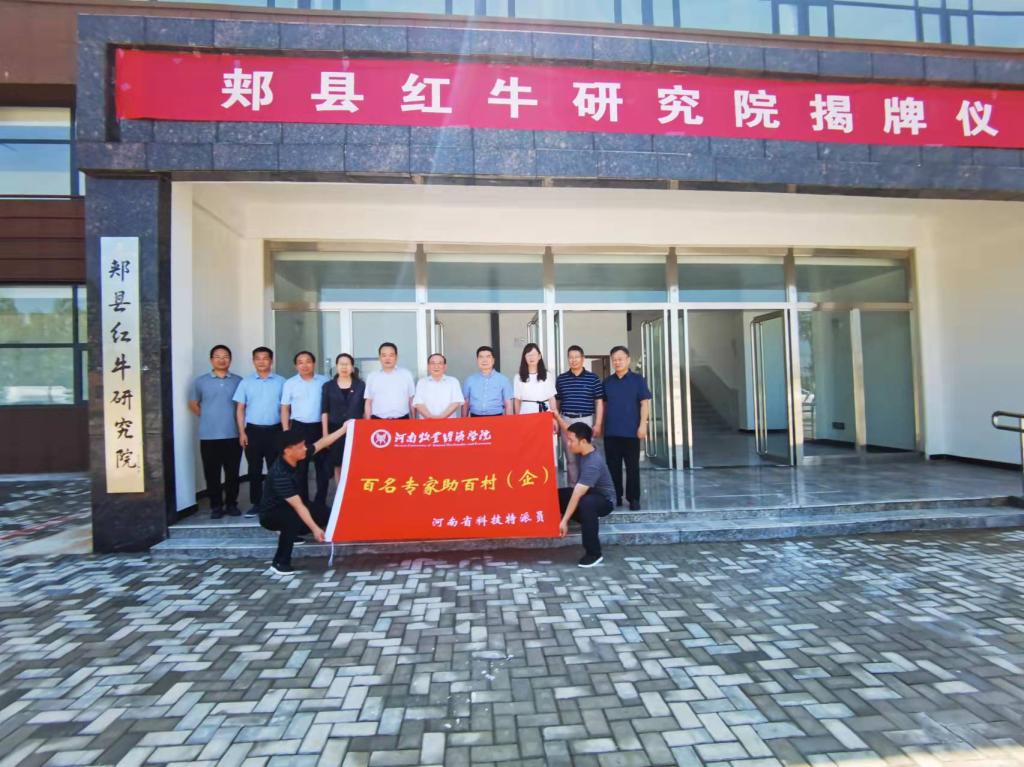 7月23日,郏县红牛研究院揭牌暨“双百”工程启动仪式在郏县堂街镇郏县红牛育种示范实验基地举行,beats365官方网站学术委员会主任张卫宪教授,科研处处长潘春梅教授,社会服务办公室处长胡华锋教授,beats365官方网站经理席磊教授,县委常委、组织部部长宋罡,副县长李政杰,县政协二级调研员周慧敏出席,beats365官方网站及郏县红牛产业发展服务中心相关人员参加仪式。