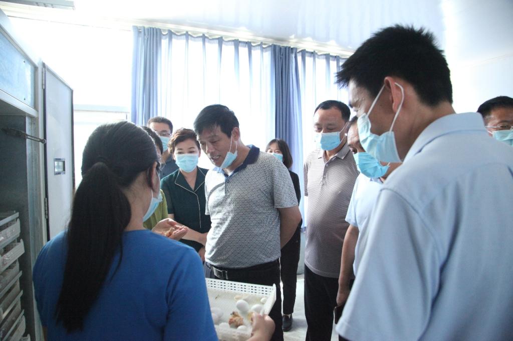 杨宝进董事长一行参观了该企业自动孵化车间、肉鸽生产车间等,并与舞钢市政府相关领导和天成鸽业董事长进行了深入座谈。