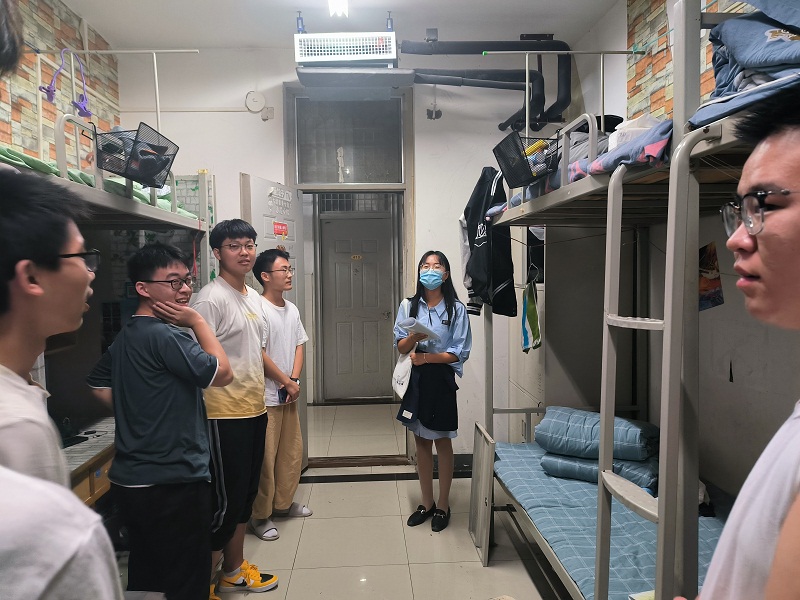 当日傍晚,公司领导老师第一时间走访员工宿舍,及时了解员工思想动态,生活是否习惯、住行中的细枝末节等问题都无微不至的予以询问,为新生送去暖心的关怀和贴心的帮助,拉近了和同学们的距离,提升了新同学对老员工活的认知。