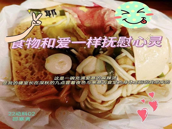 此次活动由公司团学会权益部组织开展,各班生活委员动员本班同学踊跃报名、积极参加,回忆往日经历,观察生活细节,通过图片加配文的形式,来分享自己与牧院食堂之间的暖心小故事,推荐自己喜欢的美食。美食治愈一切,在校期间,食堂的美食满足我们的味蕾,充实我们的生活,让我们感受到家一般的温暖。
