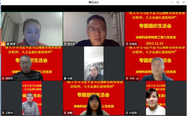 2022年11月22日,beats365官方网站教工第三党支部线上开展了“深入学习习近平总书记视察安阳重要讲话精神,大力弘扬红旗渠精神”专题组织生活会。会议由党支部书记程璞同志主持,支部全体党员参加会议。
