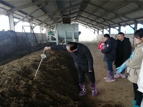 在有机肥生产车间,动科院教师看望了公司驻场开展有机肥发酵试验的实习生,详细询问了同学们在生活、学习和实践中的收获和遇到的问题。牛晖教授逐条详细解答了员工们在试验过程中的问题和困惑,现场演示了测量堆肥温度、湿度等指标的具体步骤,并勉励同学们一定要珍惜实践锻炼的机会,多了解、多思考、多动手,为以后从事相关行业打下基础。