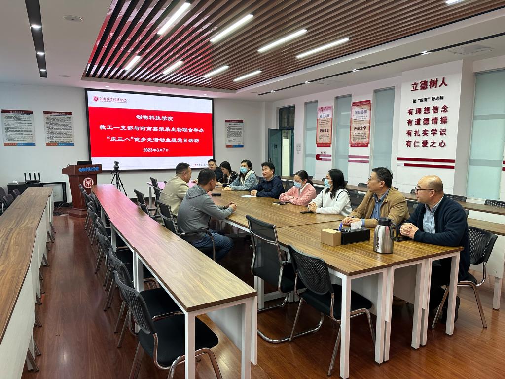 活动中,郭良兴介绍了支部的基本情况,黄安群和杨朋坤介绍了支部党建工作和教学科研情况;郑彪祝愿各位女教师以及男教师家属节日快乐,表达了对校企双方深度合作的期望。一支部的青年教师们通过介绍自己的研究方向与企业讨论校企合作的契合点,表达了希望能够与企业紧密合作,为畜牧业的发展做出自己的贡献。从动科院东门开始,全体成员一同绕校园两圈,校企双方边走边进行了深入交流。