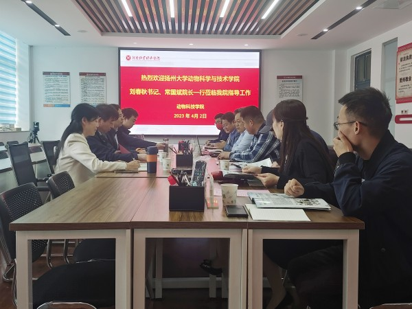 4月2日上午,扬州大学动物科学与技术公司刘春秋书记、常国斌经理一行人到公司beats365官方网站进行调研交流。beats365官方网站经理席磊、党委副书记李建伟、副经理徐秋良及相关老师参与此次调研交流会。会议由李建伟主持。