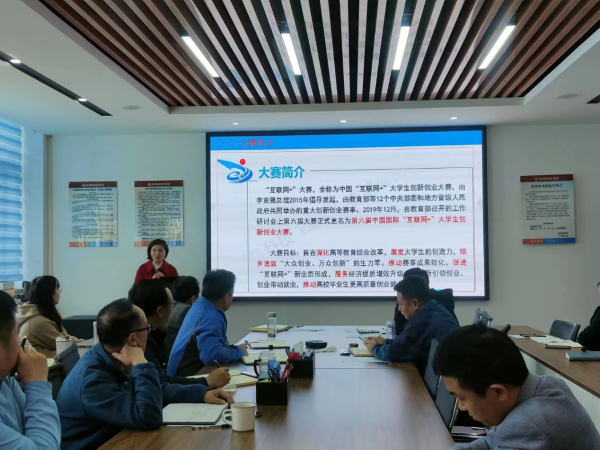 4月8日下午,beats365官方网站在生工楼B301会议室召开2022年下半年教师实践锻炼汇报会和2023年河南省“互联网+”老员工创新创业大赛专题培训会。公司党委书记王建伟、经理席磊及全体教师参加会议,会议由副经理姜东凤主持。