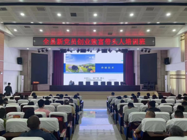 为扎实推进“百名专家助百村(企)”工程(“双百”工程)深入实施,科技赋能地方产业发展,培育壮大农村党员创业致富带头人队伍,4月13日-4月14日,受公司省派驻新蔡县大马庄村第一书记杨军邀请,公司党委书记王建伟带队,产业服务团成员牛晖教授、韩占兵教授、权凯教授、徐文彦副教授、赵广伟博士一行赴新蔡县举行技术培训班。此次培训班由新蔡县委组织部组织,由各乡镇街道精心挑选推荐的361名新党员创业致富带头人参加培训,培训班为期2天。