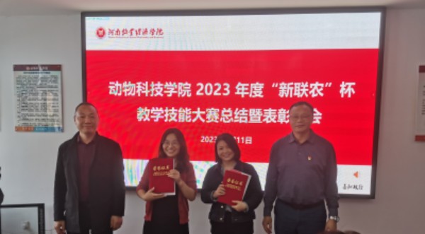 首先牛晖副经理宣读了教学技能大赛表彰决定,获奖教师代表许蒙蒙博士和优秀组织奖获奖代表动物营养与饲料教研室主任霍文颖博士分别发表了获奖感言。