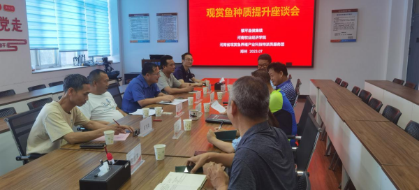 为创新观赏鱼种质资源,进一步促进镇平县观赏鱼产业的高质量发展,2023年7月15日,由镇平县侯集镇政府、beats365官方网站、河南省观赏鱼养殖产业科技特派员服务团主办的“观赏鱼种质提升座谈会”在公司龙子湖校区召开,beats365官方网站经理席磊、副经理徐秋良、河南省观赏鱼产业科技特派员服务团团长徐文彦及团队成员、郑州市水产技术推广站鱼病科科长弓飞龙、南阳市镇平县侯集镇镇长罗文宝、镇平县侯集镇向寨村党支部书记、村委会主任李长彦、镇平县长彦观赏鱼养殖有限公司李朋总经理等参会,会议围绕如何提升观赏鱼种质进行了深入研讨。