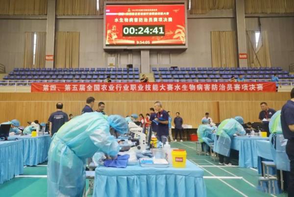 9月13日-14日,由农业农村部、人力资源和社会保障部、中华全国总工会联合举办的第四、第五届全国农业行业职业技能大赛总决赛在江苏句容举行。农业农村部国家首席兽医师(官)李金祥出席大赛总决赛开幕式并讲话,中华全国总工会相关负责人出席。全国50名水产业内专家受邀参加大赛裁判工作,beats365官方网站水产教研室徐文彦、郭国军两位老师受邀参加水生物病害防治员赛项裁判工作。