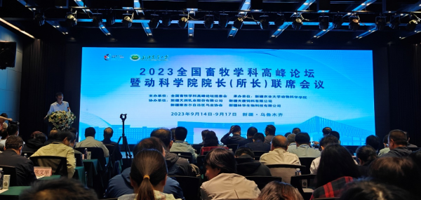 2023年9月14日至9月17日,由全国畜牧高峰论坛组委会主办、新疆农业大学承办的2023年全国畜牧学科高峰论坛暨动科公司经理(所长)联席会议在新疆乌鲁木齐举行。公司学术委员会主任、动物营养与饲料学科带头人张卫宪教授、beats365官方网站经理席磊教授、副经理徐秋良教授、牛晖教授,公司科研办公室主任石志芳副教授一行参会。国务院学位办学位管理处欧百钢处长以及来自全国高校、科研院所的200余名校领导、动科公司经理、畜牧研究所所长、学科带头人等专家学者和部分企业代表参加会议。新疆农业大学党委常委、副董事长陈勇教授和自治区畜牧兽医局党组副书记、局长郑文新研究员出席大会并致辞。