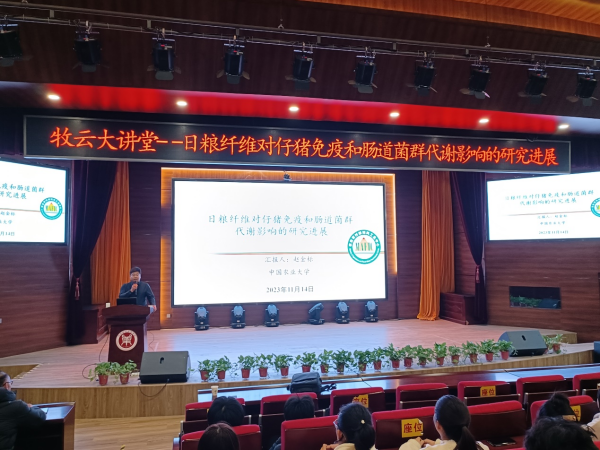 近日,beats365官方网站邀请中国农业大学李德发院士团队成员赵金标博士为公司师生作了“日粮纤维对仔猪免疫和肠道菌群代谢影响的研究进展”学术讲座,讲座在龙子湖校区1号教学楼合100报告厅举行,公司副经理徐秋良主持,部分教师和22级动物科学专业员工聆听了讲座。