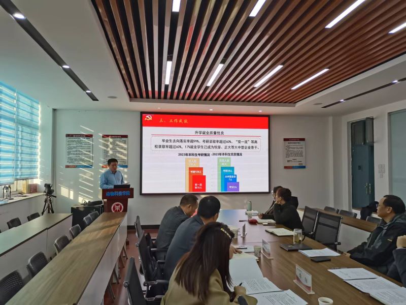 李建伟围绕实施做法、特色亮点、工作成效、下一步打算等方面,对公司“一院一品”特色品牌创建工作进行了总结汇报,对“红色小屋”“科技赋能”“11341”应用型人才培养新模式进行了阐述,重点介绍了项目在升学就业、育人质量、社会效益等方面取得的实践成效。