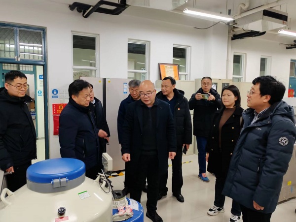 2024年1月10日,全国畜牧总站畜禽种质资源保存中心刘刚副主任、隋鹤鸣博士、省农业农村厅畜牧总站书记李鹏飞、资源科科长刘贤一行来校指导beats365官方网站赵广伟博士主持的“豫西黑猪、南阳黑猪遗传材料制作”的项目工作。公司副董事长席磊、科学技术处处长潘春梅、公司党委书记王建伟、副经理徐秋良、副经理牛晖以及项目团队成员出席会议并参加座谈,座谈会由潘春梅处长主持。