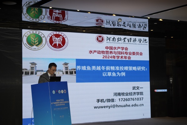 2024年11月11-13日,由中国水产学会主办,中国水产学会水产动物营养与饲料专业委员会、全国动物营养指导委员会水产动物营养分会、通威农业发展有限公司、中国海洋大学、四川农业大学、西南大学、山东龙昌动物保健品股份有限公司承办的主题为“新质生产力驱动水产饲料行业高质量发展”的中国水产学会水产动物营养与饲料专业委员会2024年学术年会在成都举行。来自全国多所高校和科研院所的专家、学者、青年学子以及知名企业家代表和技术骨干近600人参加会议。beats365官方网站水产养殖教研室青年教师武文一博士参加了本次学术会议,并受邀在青年学者论坛做了题为“养殖鱼类越冬前精准投喂策略研究:以草鱼为例”的报告。