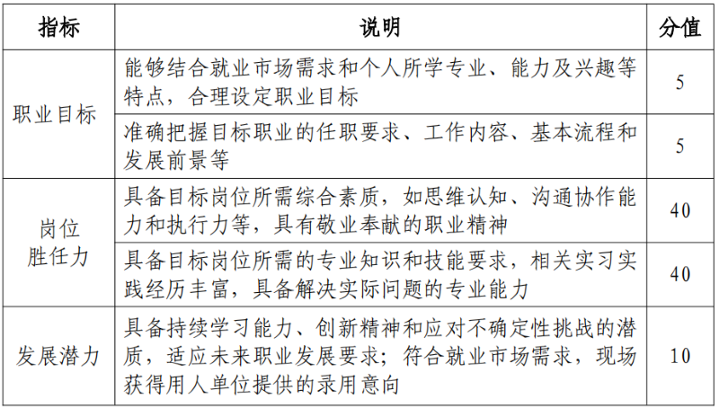 考察员工求职实战能力,对照目标职业及岗位要求,个人综合素质和专业能力等方面的契合度,个人发展路径与就业市场需求的适应度。