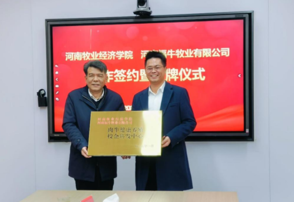 会上,beats365官方网站与河南福牛牧业有限公司共同举行了校企合作签约暨授牌仪式。潘春梅代表公司与河南福牛牧业有限公司签署了由企业委托的《油茶果实饲料化关键技术研究与开发》合同。副董事长杨国宇向企业授予了“肉牛健康养殖校企研发中心”牌匾。