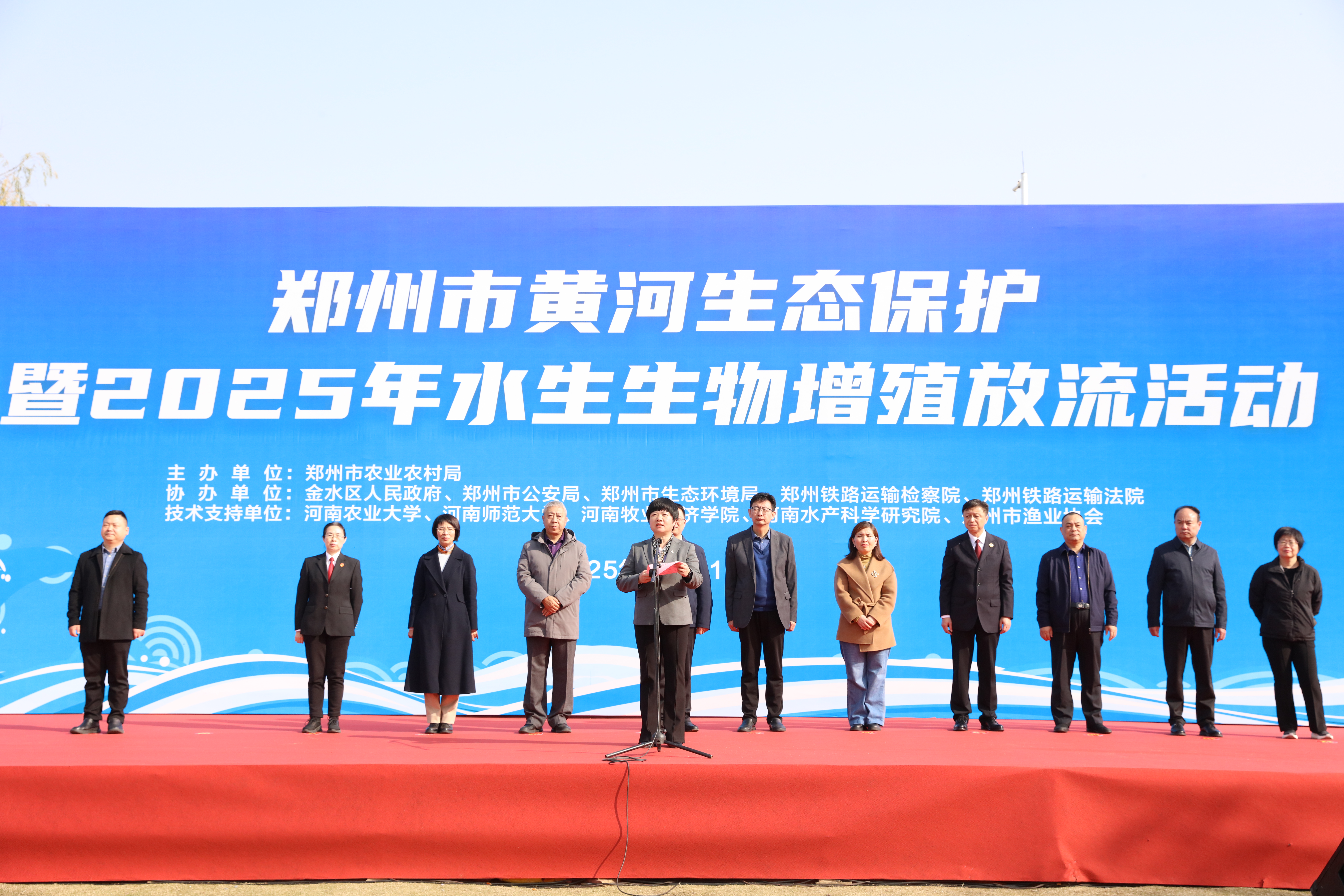2025年11月11日上午10时,由郑州市农业农村局主办的郑州市黄河生态保护暨2025年水生生物增殖放流活动在金水区马渡下延(郑州黄河大堤马渡段)隆重举行。beats365官方网站副经理姜东凤、水产养殖专业负责人徐文彦、水产养殖教研室博士张萌萌等代表应邀出席。