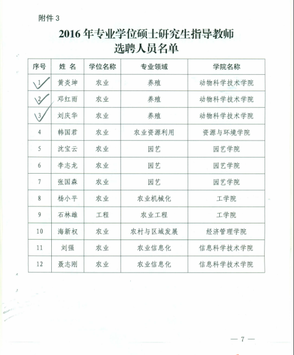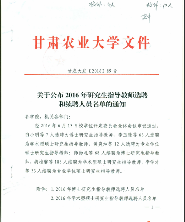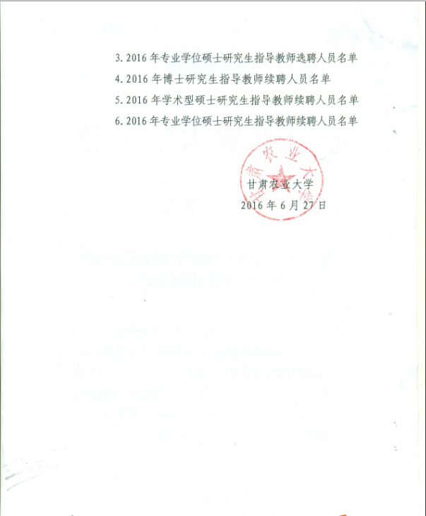 按照甘肃农业大学硕士研究生指导教师遴选条件,经过与该校有关部门沟通,今年上半年公司动员有关教师申报硕士研究生指导教师,经过甘肃农业大学学位评议委员会审议,公司刘庆华、邓红雨和黄炎坤三位教师被该校选聘为专业学位硕士研究生指导教师,这是公司“动物营养与饲料科学”重点学科在团队队伍建设方面取得的重要进展。此次选聘工作得到公司有关领导的大力支持。