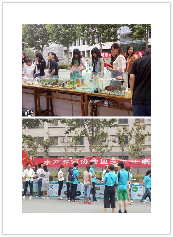 灵动游鱼水间戏,各类知识心中记。活动伊始,水产养殖协会会员们在中心花坛展示了各种鱼类标本、鱼类图谱、观赏鱼、精美的玻璃鱼缸和别致的水族造景。在展示现场,美丽的鱼儿在水中游动,营造了浓烈的“鱼”乐氛围,吸引了每一位路过的师生前来参观欣赏。鱼种类繁多,且都是独一无二的,它们都有不同的漂亮之处和生存环境。为了更好的普及渔业文化知识及水产养殖科学知识,水产养殖协会成员组织有序的向每一位观赏者介绍鱼类标本、观赏鱼科学饲养管理知识和水族养护技术等内容,耐心热情的向全校师生介绍推广鱼类文化知识,得到了广大师生的一致认可和好评。