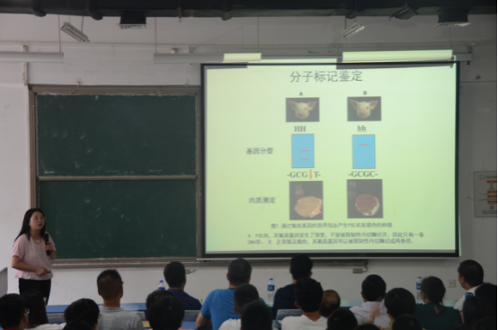 赵书红教授报告的主题是“猪分子细胞育种新技术开发与应用”,主要围绕猪育种的重要性、猪育种的发展趋势、猪育种新技术和她们科研团队相关科研成果四个方面详细介绍了猪育种工作的最新研究成果,重点介绍了分子育种过程中基于基因组高密度标记信息的全基因组选择技术(GS)以及猪经济性状相关基因编辑技术的应用。赵书红教授的精彩报告赢得了师生们热烈的掌声。在提问互动环节,师生们争先提问问题,赵书红教授对问题一一悉心解答,现场气氛热烈非凡。最后,公司经理黄炎坤教授做了总结发言并对赵书红教授在百忙之中给公司师生做精彩报告表示感谢。公司师生表示通过此次报告会受益匪浅,期待以后有更多的机会与学科专家们零距离接触。