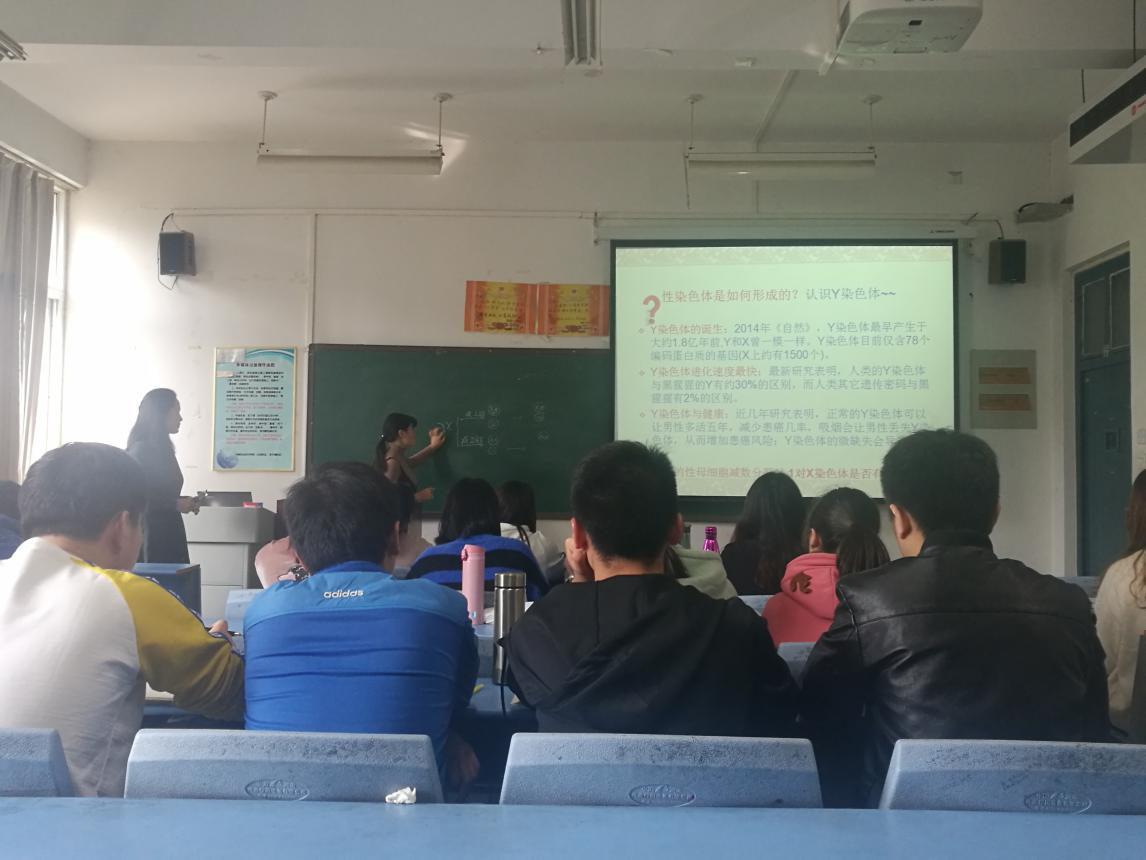 本次研讨型观摩课由动物遗传育种与繁殖教研室李婉涛老师授课,授课内容为性状遗传中的伴性遗传,从遗传与性别和环境与性别两方面入手,由浅至深,循序渐进地讲授了性染色体决定性别、基因平衡理论、染色体组倍数决定性别等知识点,期间与员工互动良好,同时引导员工理解记忆。观摩课活动结束后,听课老师一致认为李婉涛老师授课生动、备课充分,与员工互动学习效果良好,培养了员工主动思考、主动学习的能力,有效调动了员工的学习兴趣和积极性,并且授课过程中把握了学科前沿动态,补充了最新的研究结果,是值得大家学习的榜样。