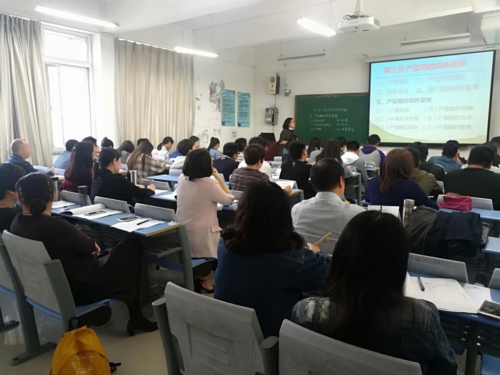 本次交流型观摩课由养禽教研室青年教师杨朋坤博士授课,授课内容为家禽生产技术中的产蛋鸡饲养管理,从产蛋规律、环境条件控制、产蛋期的饲料、产蛋期的饲喂等方面进行讲解,由浅至深,从生产实践出发,引导员工了解并学习生产实践中的实际状况、问题及注意事项。观摩课活动结束后,听课老师一致认为杨朋坤博士备课充分、授课认真,基本功扎实,知识点丰富,理论与实践结合良好,员工反馈良好。建议讲课中突出重点,多增加图片,增加授课趣味性,加强与员工沟通。