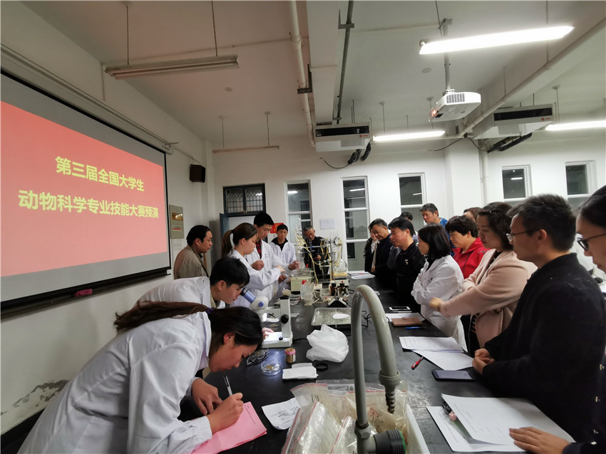 预演活动中同学们严格按照比赛的评分标准和要求认真有序进行,一共分为四个环节:畜牧场设计、掺假鱼粉鉴定、鸡的精液采集、猪的背膘测定。指导老师指出同学们需要课下进一步熟知相关专业知识,把赛场上评委老师可能提问的问题进行设想和回答,其次实验过程中要注意程序的完整性,在操作正确的基础上提升速度,以及其他细节的注意事项。