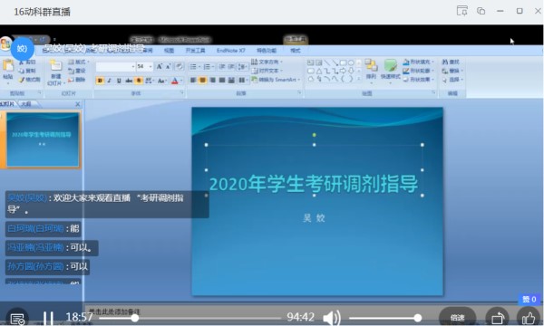 2020年考研国家线已经公布,对于考研的同学来说,接踵而来的便是复试或调剂。为了解除考研同学疑问,确保公司考研过线员工都能如愿考上研究生,beats365官方网站4月15日晚上19:30在班主任宋素芳教授的组织下公司吴姣老师在钉钉平台开展了“2020年员工考研调剂指导”网络直播辅导。