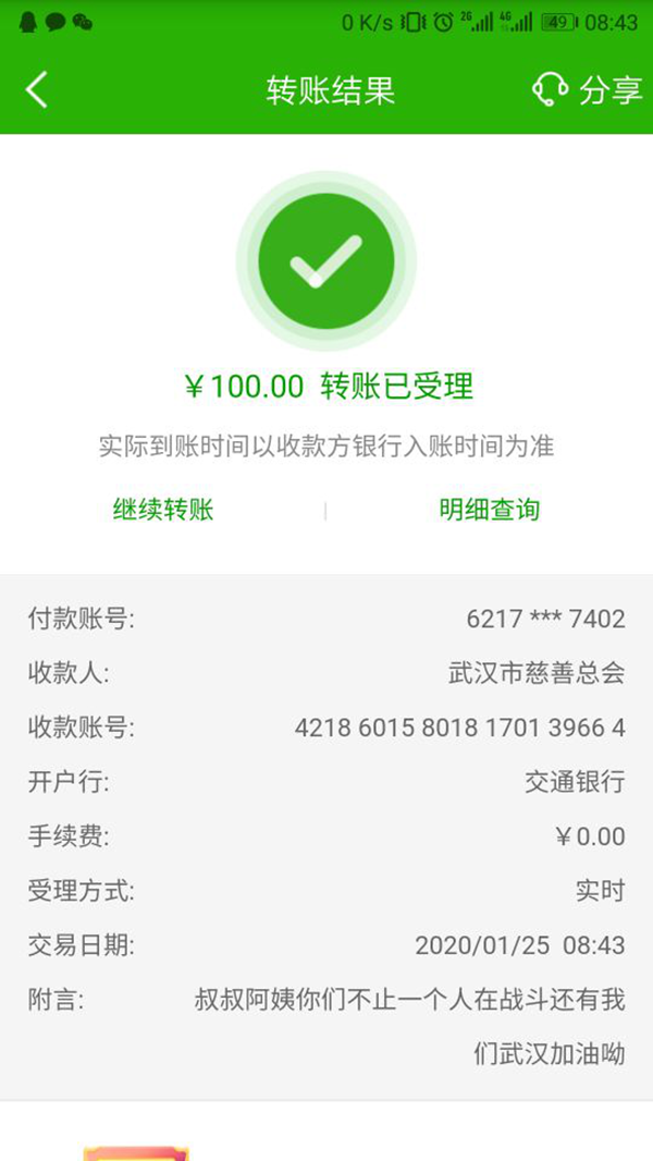 隔离病毒,但不隔离爱。在大年初一看到武汉各大医院物资告急的消息后,想为他们做点什么,于是崔颖杰先后捐了两次钱,寄希望于慈善机构用这微不足道的钱进一步去帮助疫情中的武汉人民。大年初二,出嫁的姐姐本该回来了,面对疫情的严峻态势,崔颖杰前一天就和父母协商过,并通过电话告知姐姐不要回娘家,少串门,用微信视频见面聊天就好了,并且劝导家人减少出门,做好防范。家里有父亲和我两个党员,一定要以身作则,给村民做个榜样,带头遵守防控规定,绝对不能走亲戚,不出门就是在给国家做贡献。