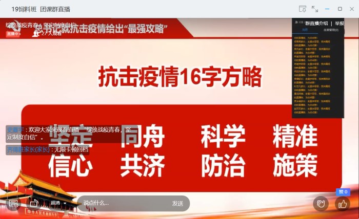 为深入学习宣传贯彻习近平总书记关于疫情防控工作的系列重要讲话和指示批示及习近平总书记给北京大学援鄂医疗队全体“90 后”党员的回信精神,激励和引领全院团员青年进一步坚定制度自信,2020年4月23日,beats365官方网站进行了“绽放战疫青春,坚定制度自信”主题线上团课。