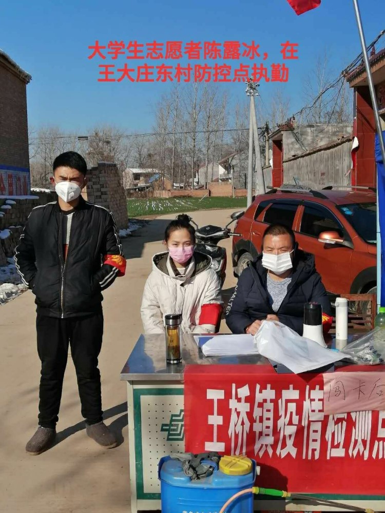 刚开始许多人并不重视这次疫情的严重性,但当疫情以意想不到的速度在全国蔓延开来,短短几天,感染人员以及死亡人员的数量不断增加,人们才意识到这次的疫情来势汹汹势不可挡。看到一位位白衣天使逆行而上心里油然而生一种敬佩之情,心想着也要为这次抗疫情做些什么,所以陈露冰前去当地的村委,报名做一名志愿者。