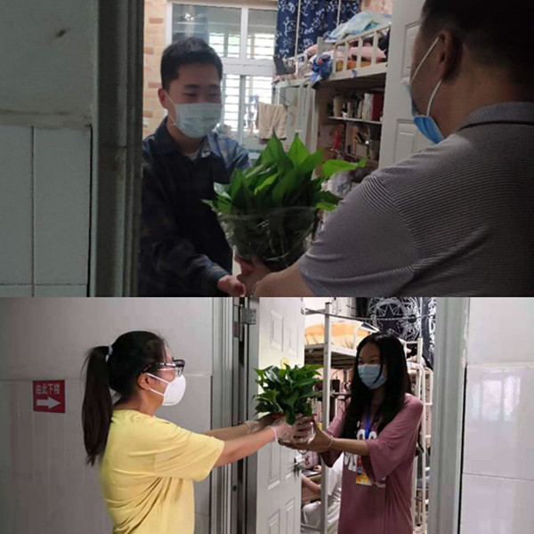 当同学们手捧绿萝的时候,他们感受到了来自公司员工工作队伍的人文关怀,他们表示一定会按照公司的要求,充实在宿舍期间的的集中生活,好好学习。