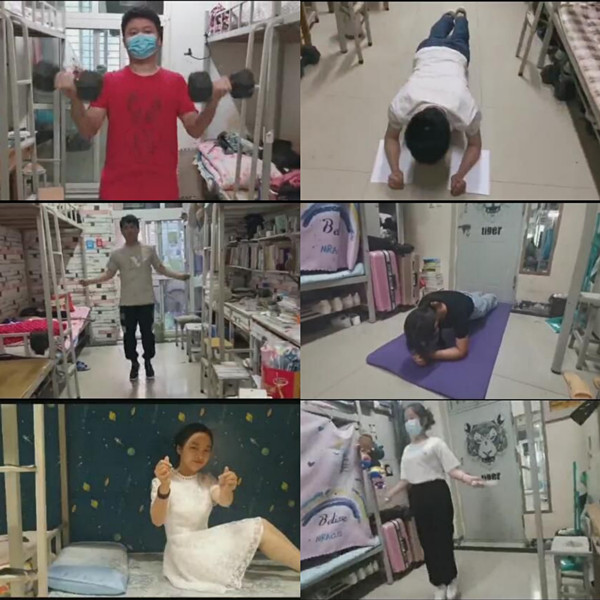 在宿舍内,46名同学充分利用宿舍内部的设施和物品,开动脑筋,发善思维,结合自身的擅长,展开形式多样的室内活动,包括:平板支撑、举哑铃、仰卧起坐、跳绳等。充分展现了当代老员工对于生活和生命的热爱,对于生活乐观的态度,在几天时间内,员工们积极准备,完成了线上运动接力赛,本次活动受到同学们的积极关注和一致好评。
