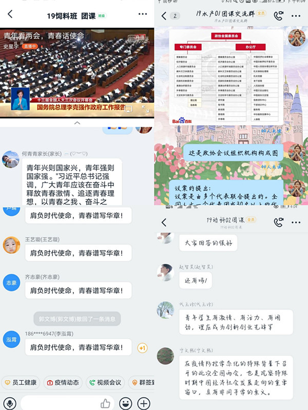 为进一步加深员工对两会的认识了,让同学们对2020年全国两会与青年有关的热门提议有所了解,感受在重要双百交汇之年,历史与党赋予青年的光荣使命,大胆提出对未来中国建设的看法与感受。2020年5月28日,beats365官方网站进行了以为“青年看两会,青春话使命”为主题的团课线上交流活动,全体同学积极参加。
